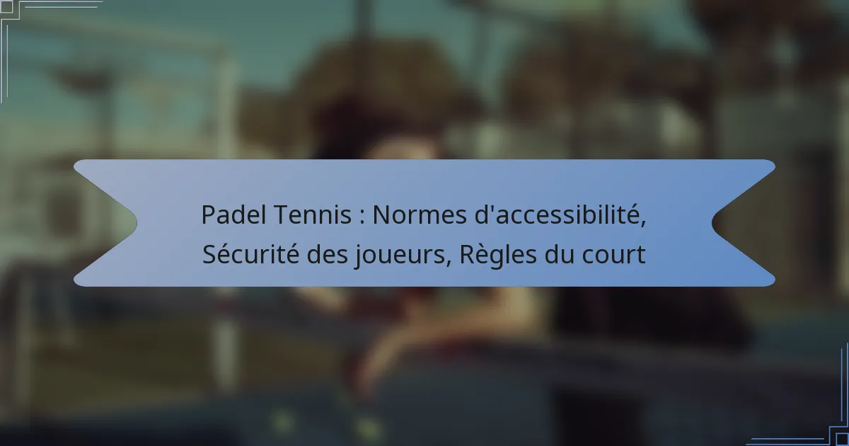 Le padel est un sport en pleine expansion qui met l’accent sur l’inclusivité grâce à des normes d’accessibilité, garantissant que les joueurs en situation de handicap peuvent participer en toute sécurité et confortablement. La sécurité des joueurs est primordiale, avec des stratégies mises en place pour prévenir les blessures et promouvoir l’utilisation d’équipements de sécurité appropriés. De plus, comprendre les règles spécifiques du court et sa configuration est crucial pour les joueurs et les officiels afin d’assurer un jeu équitable et agréable.
