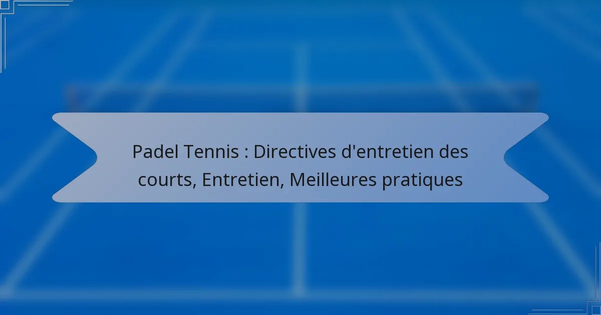 Quelles sont les principales directives d’entretien pour les courts de padel ?