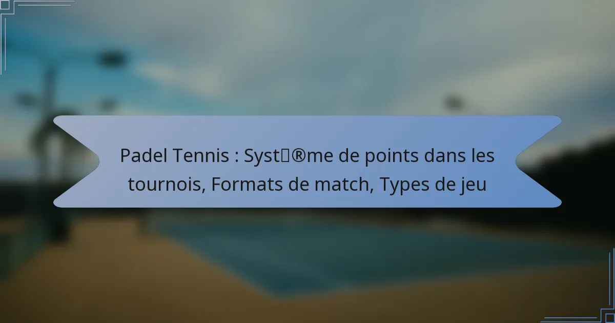 Le padel tennis propose une variété de types de jeu qui s’adressent à la fois aux joueurs récréatifs et compétitifs. Comprendre ces types, ainsi que leur système de points et leurs formats de match, peut améliorer l’expérience de jeu et aider les joueurs à choisir le cadre adapté à leur niveau de compétence.