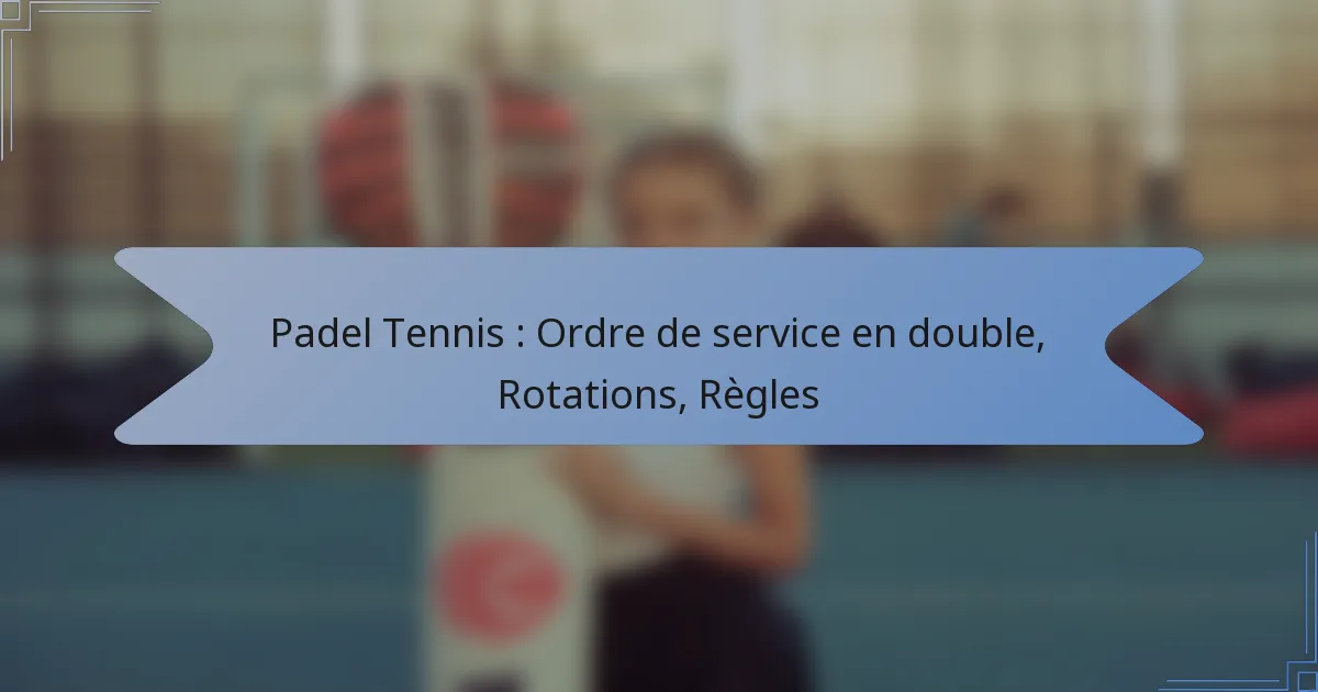 Le padel tennis est un sport dynamique joué en double, où comprendre l’ordre de service et les rotations des joueurs est essentiel pour un jeu efficace. Chaque joueur doit être conscient de sa séquence de service et de la manière de se positionner stratégiquement sur le court pour améliorer la performance de son équipe. La familiarité avec les règles clés, y compris l’ordre de service et le système de points, garantit un match équitable et agréable pour tous les participants.